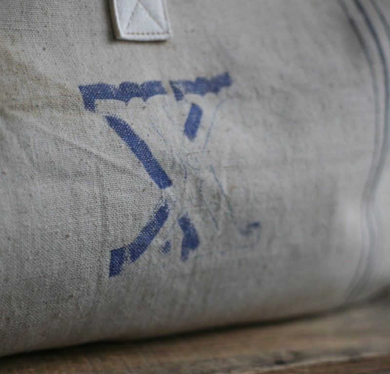 New in the shop today - Extra large recycled canvas carryall .. 1930's era feed sack outer, leather shoulder straps & buckle closure, WWII era recycled hardware. Available